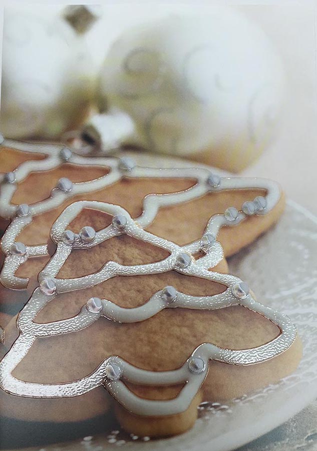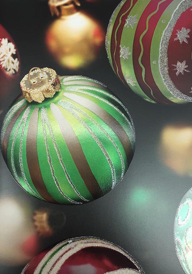 PRODUCTION NOTES: Printed on 100 lb. Sterling Premium Dull White Cover utilizing 4C Process Hybrid Inks, Spot Red Glitter UV, Spot Gloss UV and Spot Soft Feel Coating. Manufactured on a 10 Unit KBA 106 29” x 41” Press with Double Coater including Aqueous and UV modules.